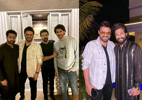 ఇక చరణ్ ఇచ్చిన పార్టీలో తన తోటి టాప్ స్టార్స్ లో మహేష్ బాబు, జూనియర్ ఎన్టీఆర్, అల్లు అర్జున్ పాల్గొన్నారు. పవన్ కళ్యాణ్, ప్రభాస్ మిస్ అయ్యారు.