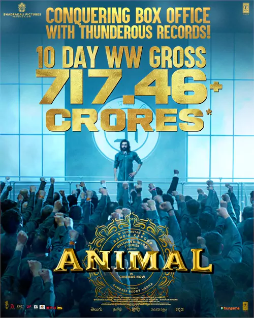 డిసెంబర్ 1 న విడుదల అయిన యానిమల్ విడుదల రోజు నుంచే ఇండియన్ బాక్స్ ఆఫీస్ వద్ద సరికొత్త రికార్డ్స్ ని సృష్టిస్తు ముందుకు దూసుకుపోతుంది. ఇప్పడు ఇంకో సరికొత్త రికార్డుని యానిమల్ తన ఖాతాలో వేసుకుంది. 10 రోజులకి 717 కోట్ల రూపాయిల గ్రాస్ ని సాధించింది. ఇంకా గట్టిగా చెప్పాలంటే వరల్డ్ వైడ్ గా అక్షరాలా 717 .46 కోట్ల గ్రాస్ ని వసూలు చేసింది. ఇప్పుడు ఈ ఫిగర్ తో ఎన్టీఆర్ తన సినిమాలో ఇది దయా గాడి దండయాత్ర అని చెప్పినట్టు ఇండియన్ బాక్స్ ఆఫీస్ వద్ద ఇప్పుడు యానిమల్ దండయాత్ర చేస్తుంది.