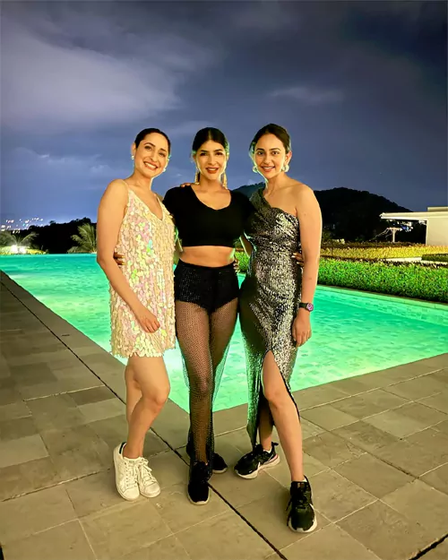 సినీ పరిశ్రమలో మంచు లక్ష్మికి ఎందరో స్నేహితులు ఉన్నారు. పలువురు హీరో హీరోయిన్లతో ఆమె మంచి అనుబంధాన్ని కలిగి ఉంటుంది. ఆ లిస్టులో హీరోయిన్లు రకుల్ ప్రీత్ సింగ్, ప్రగ్యా జైస్వాల్ కూడా ఉంటారు. రకుల్, ప్రగ్యాతో కలిసి దిగిన ఫొటోని తాజాగా సోషల్ మీడియాలో షేర్ చేసింది మంచు లక్ష్మి. అందులో ఆమె డ్రెస్సింగ్ స్టైల్ హాట్ టాపిక్ గా మారింది. కొంతకాలంగా మంచు లక్ష్మి గ్లామర్ డోస్ పెంచింది. ముఖ్యంగా ముంబైకి మకాం మార్చినప్పటి నుంచి అందాలు ఆరబోస్తూ ఫొటోలను పంచుకుంటుంది. ఈ క్రమంలో తాజాగా ఆమె షేర్ చేసిన ఫొటో సోషల్ మీడియాలో వైరల్ గా మారింది.