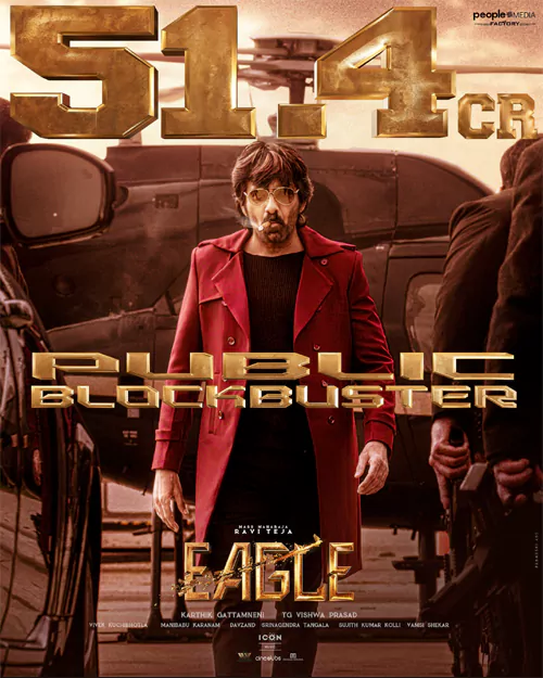 రవితేజ హీరోగా కార్తీక్ ఘట్టమనేని దర్శకత్వంలో రూపొందిన సినిమా 'ఈగల్'. పీపుల్ మీడియా ఫ్యాక్టరీ నిర్మించిన ఈ యాక్షన్ థ్రిల్లర్ ఫిబ్రవరి 9న ప్రేక్షకుల ముందుకు వచ్చింది. స్టైలిష్ యాక్షన్ ఫిల్మ్ గా ప్రేక్షకుల నుంచి పాజిటివ్ టాక్ తెచ్చుకున్న ఈ సినిమా.. మంచి వసూళ్లతో సత్తా చాటుతోంది. పది రోజుల్లోనే ఈ చిత్రం ప్రపంచవ్యాప్తంగా రూ.51.4 కోట్ల గ్రాస్ రాబట్టినట్లు మేకర్స్ అధికారికంగా ప్రకటించారు. ప్రస్తుతం థియేటర్లలో ఇతర పెద్ద సినిమాల సందడి లేకపోవడంతో.. ఈగల్ మూవీ ఫుల్ రన్ లో రూ.60 నుంచి రూ.70 కోట్ల గ్రాస్ రాబట్టే అవకాశాలు కనిపిస్తున్నాయి.