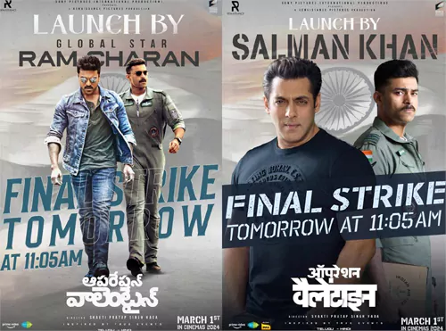 వరుణ్ నయా మూవీ ఆపరేషన్ వాలెంటైన్. తెలుగు, హిందీ భాషల్లో రూపొందిన ఈ ద్విభాషా చిత్రం థియేట్రికల్ ట్రైలర్ రేపు విడుదల కానుంది. తెలుగు ట్రైలర్ను మెగా పవర్ స్టార్ రామ్ చరణ్ లాంచ్ చేస్తుండగా హిందీ ట్రైలర్ ని సల్మాన్ ఖాన్ లాంచ్ చేస్తున్నాడు. ఈ మేరకు మేకర్స్ అధికారకంగా ప్రకటించారు.ఇప్పుడు ఈ వార్త ఫిలిం సర్కిల్స్ తో పాటు సోషల్ మీడియాలో కూడా క్రేజీ గా మారింది. ఆల్రెడీ ఇప్పటికే రిలీజైన టీజర్, పాటలు కూడా అందరిని ఆకట్టుకున్నాయి.