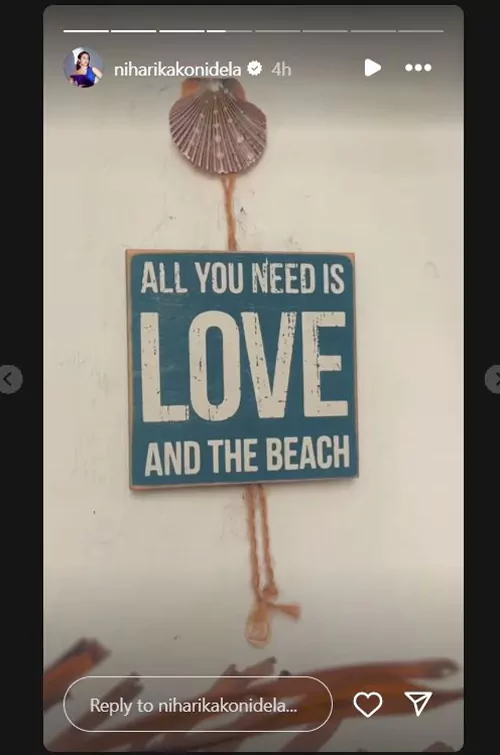 నీహారిక తన ఇనిస్టాగ్రామ్ స్టోరీ లో నీకు కావాల్సింది ప్రేమ బీచ్ మాత్రమే అనే క్యాప్షన్ ని ఉంచింది. ఇప్పుడు ఆ క్యాప్షన్ ని చూసిన వారందరు నీహారిక ఎవరి ప్రేమలో అయినా పడిపోయిందా అనే అనుమానాలని వ్యక్తం చేస్తున్నారు. తన ప్రేమ గురించి ఆ విధంగా ఏమైనా హింట్ ఇస్తుందేమో అనే మాటలు కూడా వినిపిస్తున్నాయి.కానీ ఆమె సన్నిహితులు మాత్రం నీహారిక తన ఫ్యామిలీ మెంబెర్స్ గురించి స్పందిస్తు ఆ విధంగా పోస్ట్ చేసిందని అంటున్నారు.