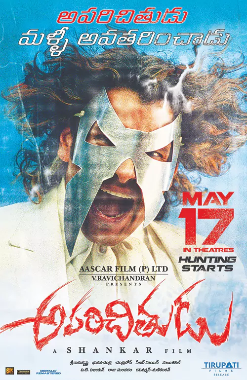 చియాన్ విక్రమ్, డైరెక్టర్ శంకర్ కాంబినేషన్ లో వచ్చిన సెన్సేషనల్ మూవీ 'అపరిచితుడు'. ప్రముఖ నిర్మాత వి. రవిచంద్రన్ నిర్మించిన ఈ సినిమాలో సదా హీరోయిన్ గా నటించింది. ప్రభుత్వ అధికారుల్లో అవినీతి, అక్రమాల కథా నేపథ్యంగా రూపొందిన ఈ సినిమా 2005లో రిలీజై సంచలన విజయం సాధించింది. ఈ చిత్రం భారీ విజయాన్ని అందుకోవడమే కాకుండా విక్రమ్ను స్టార్ హీరోగా, కమర్షియల్ హీరోగా మార్చింది. ప్రస్తుతం రీ రిలీజ్ల హవా కొనసాగుతున్న నేపథ్యంలో అపరిచితుడు సినిమాను మే 17వ తేదీన రిలీజ్ చేయడానికి ప్లాన్ చేశారు.