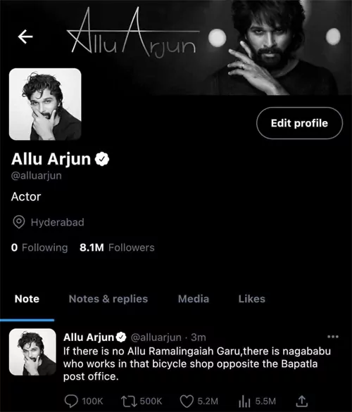 నాగబాబుని టార్గెట్ చేస్తూ అల్లు అర్జున్ ట్వీట్ చేసినట్లుగా సోషల్ మీడియాలో ఒక స్క్రీన్ షాట్ చక్కర్లు కొడుతోంది. అందులో "తన తాతగారు అల్లు రామలింగయ్య లేకపోతే.. నాగబాబు అనే వ్యక్తి బాపట్ల పోస్టాఫీస్ ఎదురుగా ఉన్న సైకిల్ షాప్ లో పని చేసుకునేవాడు." అంటూ బన్నీ ట్వీట్ చేసినట్లుగా ఉంది. కానీ అల్లు అర్జున్ ట్విట్టర్ అకౌంట్ ఓపెన్ చేసి చూస్తే మాత్రం.. ఆ ట్వీట్ కనిపించడం లేదు. దీంతో బన్నీ ఆవేశంలో ట్వీట్ చేసి, ఆ తర్వాత వెంటనే డిలీట్ చేసి ఉంటాడని కొందరు అభిప్రాయపడుతున్నారు. కొందరు మెగా, అల్లు అభిమానులు ఈ విషయంపై సోషల్ మీడియా వేదికగా గొడవలు పడుతున్నారు.
