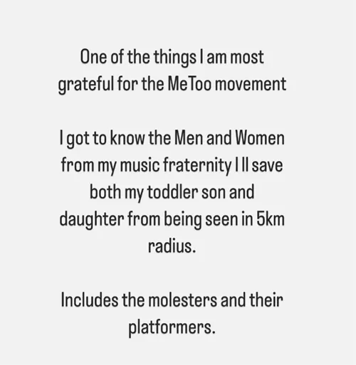 అలాంటి చిన్మయి రీసెంట్ గా కోలీవుడ్ మ్యూజిక్ ఫ్యామిలీ మీద కౌంటర్లు పేల్చింది. "మీ టూ ఉద్యమం కారణంగా ఎవరు ఎలాంటి వారు ఎలా ప్రవర్తిస్తారో అన్న విషయం బాగా తెలిసింది. అందుకే అలాంటి మోలెస్టర్స్ కి వాళ్లకు అవకాశం ఇస్తున్న వాళ్ళ నుంచి నా పిల్లలను దూరంగా ఉంచాలనుకుంటున్నాను. కనీసం 5 కిలోమీటర్ల దూరం ఉంచుతాను." అంటూ సెటైర్స్ వేసింది.