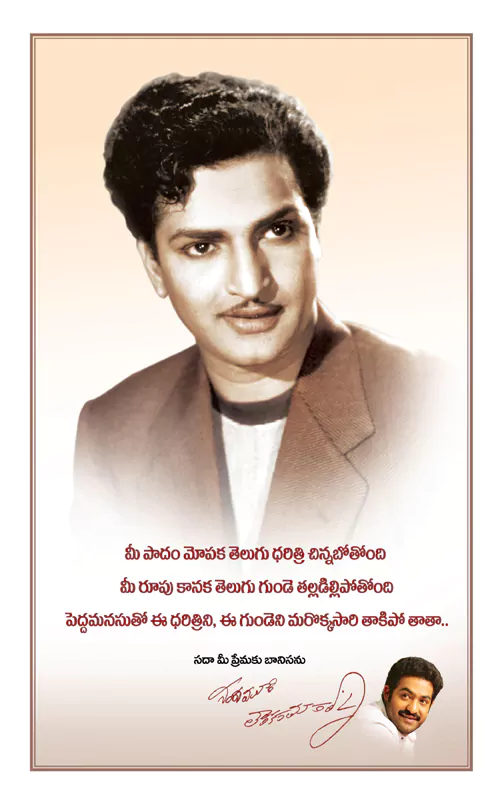 "నీ పాదం మోపక తెలుగు ధరిత్రి చిన్నబోతోంది. మీ రూపు కానక తెలుగు గుండె తల్లడిల్లిపోతోంది. పెద్ద మనసుతో ఈ ధరిత్రిని, ఈ గుండెని మరొక్కసారి తాకిపో తాతా.." అంటూ సోషల్ మీడియా వేదికగా సీనియర్ ఎన్టీఆర్ ఫొటోను పంచుకున్నారు తారక్. ప్రస్తుతం ఈ ట్వీట్ వైరల్ గా మారింది.