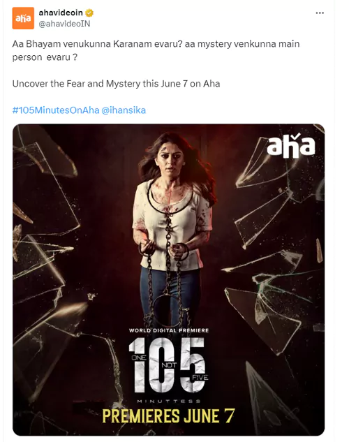 థియేటర్లలో విడుదలైన నాలుగు వారాలకే మెజారిటీ సినిమాలు ఓటీటీలో అడుగుపెడుతున్నాయి. కానీ '105 మినిట్స్' మాత్రం ఏకంగా నాలుగు నెలల తర్వాత డిజిటల్ ప్రీమియర్ కి సిద్ధమైంది. ఈ మూవీ ఓటీటీ స్ట్రీమింగ్ రైట్స్ ని ఆహా దక్కించుకుంది. ఈ చిత్రాన్ని జూన్ 7 నుంచి స్ట్రీమింగ్ చేయనున్నట్లు తాజాగా ప్రకటించింది. ఈ మేరకు "ఆ భయం వెనకున్న కారణం ఎవరు? ఆ మిస్టరీ వెనకున్న మెయిన్ పర్సన్ ఎవరు?" అంటూ సోషల్ మీడియాలో ఒక పోస్టర్ ని వదిలింది. మరి ఈ సినిమాకి ఓటీటీలో ఎలాంటి రెస్పాన్స్ వస్తుందో చూడాలి.