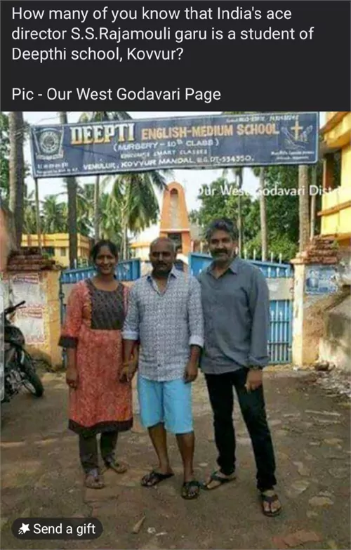 ఆంధ్రప్రదేశ్ లోని తూర్పుగోదావరి జిల్లాలో కొవ్వూరు అనే టౌన్ లో దీప్తి ఇంగ్లీష్ మీడియం హైస్కూల్ అని ఉంది. అందులోనే రాజమౌళి చదువుకున్నారు. ఈ విషయం ఎలా బయటకి వచ్చిందంటే దీప్తి స్కూల్ దగ్గర రాజమౌళి దిగిన పిక్ సోషల్ మీడియాలో ఉంది. దీంతో రాజమౌళి తెలివి తేటలకి దీప్తి హై స్కూల్ కారణం అంటూ కామెంట్స్ చేస్తున్నారు. వాళ్ళు అనే దాంట్లోనూ నిజం లేకపోలేదు. చిన్న వయసులో నేర్చుకున్న పాఠాలే జీవితంలో ఒక వ్యక్తిని ఉన్నత లక్ష్యం వైపు ఎదిగేలా చేస్తాయి.కొవ్వూరు ఆయన సొంత ఊరు అనే విషయం అందరకి తెలిసిన విషయమే.