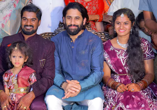 సినిమాల్లో నటించడం ద్వారానే కాదు, నిజ జీవితంలో తాము చేసే కొన్ని మంచి పనులతో ప్రేక్షకులకు సంతోషాన్ని అందిస్తుంటారు కొందరు స్టార్స్. ఆపదలో ఉన్నవారిని ఆదుకోవడం, తమని అభిమానించే వారి కోసం సమయం కేటాయించడం, అరుదైన వ్యాధులతో బాధపడేవారిని పరామర్శించి వారిలో మనో ధైర్యాన్ని నింపడం వంటి పనులు చేసే స్టార్స్ కొందరున్నారు. వారిలో నాగచైతన్య ఒకరు. ఎవరితోనూ విభేదాలు తెచ్చుకోకుండా వివాదరహితుడిగా పేరు తెచ్చుకున్న చైతన్య తన దగ్గర పనిచేవారిని కూడా బాగా చూసుకుంటారన్న పేరు ఉంది. కొందరు సినీ ప్రముఖులు వారి వ్యక్తిగత సిబ్బంది ఇంట్లో జరిగే శుభకార్యాలకు హాజరు కావడం అనేది అరుదుగా జరుగుతుంటుంది. తాజాగా నాగచైతన్య అలాంటి ఓ వివాహానికి హాజరై అందరి ప్రశంసలు అందుకుంటున్నారు. విశేషం ఏమిటంటే.. ఆగస్ట్ 8న నాగచైతన్య, శోభిత ధూళిపాళ్ళ ఎంగేజ్మెంట్ జరిగిన విషయం అందరికీ తెలిసిందే. ఆ మరుసటి రోజే రాజమండ్రిలో జరిగిన ఈ పెళ్లికి హాజరయ్యారు చైతన్య.