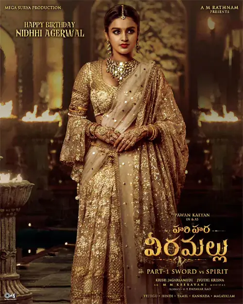 ఇక ఇప్పుడు చిత్ర బృందం మరో అప్డేట్ ఇచ్చింది. ఈ సినిమాలో కథానాయికగా నటిస్తున్న నిధి అగర్వాల్ పుట్టినరోజు సందర్భంగా ప్రత్యేక పోస్టర్తో శుభాకాంక్షలు తెలిపింది. పోస్టర్లో నిధి మహాలక్ష్మి దేవి అవతారంగా, బంగారు చీరలో, అద్భుతంగా కనిపిస్తున్న నగలతో మెరుస్తోంది. తనదైన అందంతో ఆమె మాయ చేసేలా కనిపిస్తోంది.