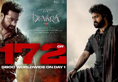 ఎన్టీఆర్లోని నట విశ్వరూపం విశ్వరూపం చూపించిన సినిమా ‘దేవర’. ప్రేక్షకులు ఈ చిత్రానికి బ్రహ్మరథం పడుతున్నారు. దేవరకు సంబంధించి ఏ రేంజ్ బిజినెస్ జరిగిందంటే.. నైజాంలో రూ. 44 కోట్లు, సీడెడ్లో రూ. 22 కోట్లు, ఆంధ్రప్రదేశ్లో రూ. 46.55 కోట్లతో కలిపి తెలుగులో రూ. 112.55 కోట్లు బిజినెస్ అయింది. అలాగే, కర్నాటకలో రూ. 16 కోట్లు, తమిళనాడులో రూ. 6 కోట్లు, రెస్టాఫ్ ఇండియా ప్లస్ హిందీలో రూ. 20 కోట్లు, కేరళలో రూ. 1 కోట్లు, ఓవర్సీస్లో రూ. 27 కోట్లతో కలుపుకుని రూ. 182.55 కోట్లు వ్యాపారం జరిగింది. ఈ సినిమా విడుదలైన మొదటిరోజే ప్రపంచవ్యాప్తంగా రూ.172 కోట్లు కలెక్ట్ చేసి ఎన్టీఆర్ స్టామినా ఏమిటో చూపిస్తోంది. ఇక ఈ సినిమాకి రిలీజ్ అన్ని చోట్ల నుంచి మంచి టాక్ వస్తోంది. దీన్ని పక్కనపెడితే మొదటి రోజు ఈ సినిమాకు రెస్పాన్స్ అద్భుతంగా వచ్చింది. దీంతో ఈ చిత్రం భారీ వసూళ్లను సాధించబోతుంది. తొలి రోజు రికార్డు స్థాయిలో డిఫరెంట్ యాక్షన్తో వచ్చిన ‘దేవర’ సినిమాకు ఆంధ్రప్రదేశ్, తెలంగాణ రాష్ట్రాల్లో ఫస్ట్ డే టాక్తో సంబంధం లేకుండా స్పందన భారీ స్థాయిలో లభించింది.