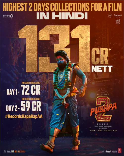 ఇక వరల్డ్ వైడ్ గా చూసుకుంటే రెండు రోజులకి 449 కోట్ల గ్రాస్ ని సాధించి ఇండియన్ సిల్వర్ స్క్రీన్ వద్ద సరికొత్త చరిత్ర సృష్టించింది. ఫస్ట్ డే కూడా 294 కోట్లు సాధించి ఫస్ట్ ఇండియన్ మూవీగా నిలిచింది.అల్లు అర్జున్ నటన,సుకుమార్(sukumar)దర్శకత్వ ప్రతిభ,అగ్ర నిర్మాణ సంస్థ మైత్రి మూవీ మేకర్స్(mythri movie makers)నిర్మాణ విలువలు పుష్ప 2 విజయానికి కారణమనే అభిప్రాయం ప్రేక్షకుల్లో వ్యక్త మవుతుంది.