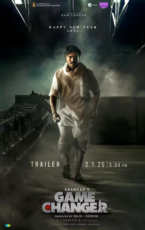 గ్లోబల్ స్టార్ రామ్చరణ్ లేటెస్ట్ మూవీ ‘గేమ్ ఛేంజర్’ చిత్రం రిలీజ్ కోసం మెగా అభిమానులు ఎంతో కాలంగా ఎదురుచూస్తున్నారు. మొత్తానికి సంక్రాంతి కానుకగా జనవరి 10న విడుదల కాబోతోంది. పాన్ ఇండియా మూవీగా పలు భాషల్లో రిలీజ్ అవుతున్న ఈ సినిమాపై భారీ ఎక్స్పెక్టేషన్స్ ఉన్నాయి. ఇప్పటివరకు ఈ సినిమా నుంచి రిలీజ్ అయిన సాంగ్స్కి మంచి రెస్పాన్స్ వస్తోంది. అయితే అందరూ ఎదురు చూస్తున్న ట్రైలర్ను కూడా మేకర్స్ రిలీజ్ చెయ్యబోతున్నారు. నూతన సంవత్సర కానుకగా జనవరి 2 సాయంత్రం గం.5.04లకు రిలీజ్ చేస్తున్నారు. ట్రైలర్ రిలీజ్ డేట్ను ప్రకటిస్తూ సినిమాలోని అప్పన్న క్యారెక్టర్తో కూడిన పోస్టర్ని రిలీజ్ చేశారు.