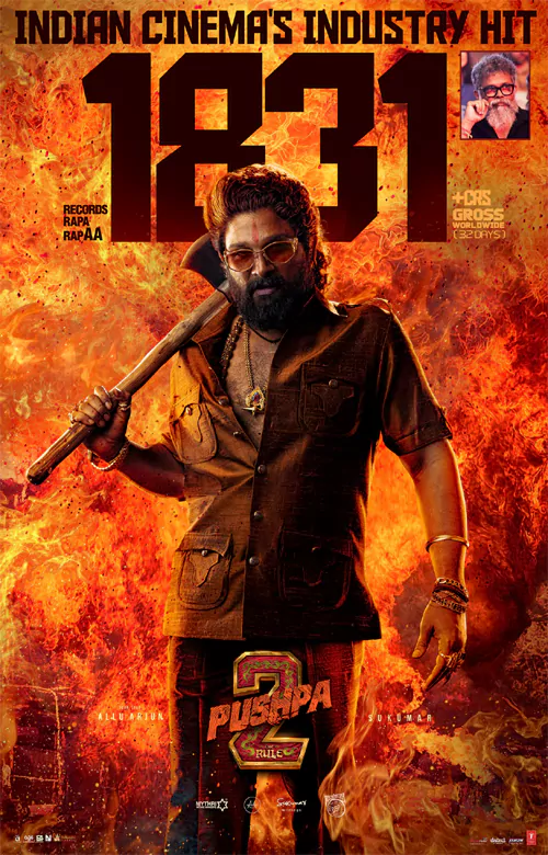 డిసెంబరు 4న ప్రీమియర్స్ షోస్తో ఇండియన్ బాక్సాఫీస్పై మొదలైన 'పుష్ప-2' వసూళ్ల రికార్డుల పరంపర సరికొత్త అధ్యాయాన్ని సృష్టించింది. కేవలం 32 రోజుల్లోనే భారతీయ సినీ చరిత్రలో ఇండియాలో అత్యధిక వసూళ్లు సాధించిన చిత్రంగా కొత్త రికార్డును క్రియేట్చేసింది. కేవలం 32 రోజుల్లోనే రూ. 1831 కోట్ల రూపాయాలు వసూలు చేసి, బాహుబలి-2 వసూళ్లను క్రాస్ చేసి పుష్ప-2 కొత్త రికార్డును క్రియేట్ చేసింది.
