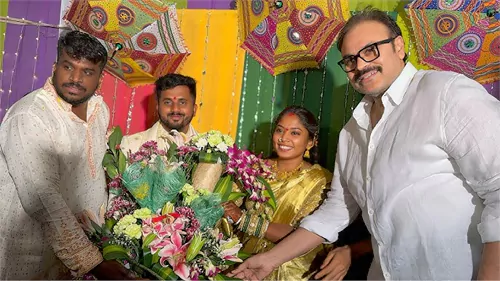 రీసెంట్ గా గబ్బర్ సింగ్ సాయి(Gabbar Singh Sai)కూతురు పెళ్లి హైదరాబాద్ లో అత్యంత వైభవంగా జరిగింది.ఈ వివాహ వేడుకకి మెగా బ్రదర్ నాగబాబు(Nagababu)హాజరయ్యి వధూవరులని ఆశీర్వదించాడు.ఈ సందర్భంగా పెళ్ళికి వచ్చిన అతిదులతో పాటు సాయి బంధువులు నాగబాబు తో ఫోటోలు దిగడానికి పెద్ద ఎత్తున పోటెత్తారు.తన కూతురు పెళ్ళికి నాగబాబు రావడంపై గబ్బర్ సింగ్ సాయి మాట్లాడుతు నాగబాబు రావడం అంటే చిరంజీవి,పవన్ కళ్యాణ్ వచ్చినట్టే అని చెప్పడం విశేషం.గబ్బర్ సింగ్ సాయి పవన్ కళ్యాణ్ కి వీరాభిమానిని తో పాటు జనసేన పార్టీ తరుపున ఆంధ్రప్రదేశ్ లో ప్రచారం కూడా చేసాడనే విషయం తెలిసిందే.