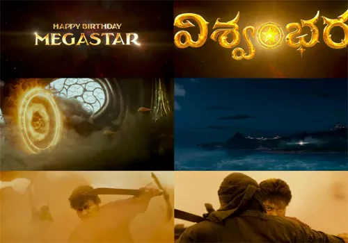 మెగాభిమానులు ఎంతో ఆసక్తిగా ఎదురుచూస్తున్న సినిమా ‘విశ్వంభర’. వశిష్ట దర్శకత్వంలో తెరకెక్కుతున్న ఈ సినిమా ఈ ఏడాది సంక్రాంతికే రిలీజ్ కావాల్సింది. రామ్చరణ్ గేమ్ ఛేంజర్ వల్ల వాయిదా వేశారు. ఆ తర్వాత విఎఫ్ఎక్స్ వర్క్ అనుకున్న సమయానికి పూర్తి కాకపోవడంతో మరోసారి ఈ చిత్రాన్ని వాయిదా వేశారు. ఫైనల్గా వచ్చే ఏడాది సమ్మర్ కానుకగా ‘విశ్వంభర’ చిత్రాన్ని విడుదల చేయబోతున్నారు. ఆగస్ట్ 22 మెగాస్టార్ చిరంజీవి పుట్టినరోజు. ఈ సందర్భాన్ని పురస్కరించుకొని ఈ సినిమా గ్లింప్స్ని రిలీజ్ చేసింది చిత్ర యూనిట్.
