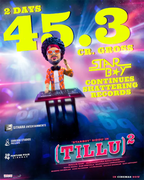 2022లో అంచనాల్లేకుండా విడుదలైన 'డీజే టిల్లు' చిత్రం ప్రేక్షకులను ఆకట్టుకొని ఘన విజయం సాధించింది. ఇప్పుడు దానికి సీక్వెల్ గా రూపొందిన 'టిల్లు స్క్వేర్'(Tillu Square) మంచి అంచనాలతో విడుదలై.. బాక్సాఫీస్ దగ్గర సంచలనాలు సృష్టిస్తోంది. 'డీజే టిల్లు' టోటల్ గా రూ.30 కోట్ల గ్రాస్ రాబడితే.. 'టిల్లు స్క్వేర్' కేవలం రెండు రోజుల్లోనే రూ.45 కోట్లకు పైగా గ్రాస్ రాబట్టింది. ఫుల్ రన్ లో వరల్డ్ వైడ్ గా రూ.100 కోట్లకు పైగా గ్రాస్ కలెక్ట్ చేసే అవకాశముంది.