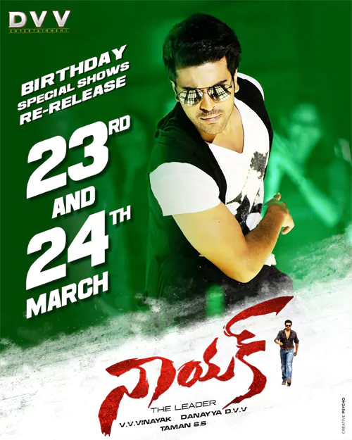 'నాయక్' సినిమాను ప్రముఖ నిర్మాత నట్టి కుమార్ రీ రిలీజ్ చేయబోతున్నారు. ఈ విషయాన్ని తాజాగా ప్రకటించారు. మార్చి 27న రామ్ చరణ్ బర్త్ డేని పురస్కరించుకుని, కాస్త ముందుగా మార్చి 23న ఈ చిత్రాన్ని రీ రిలీజ్ చేస్తున్నట్లు తెలిపారు.