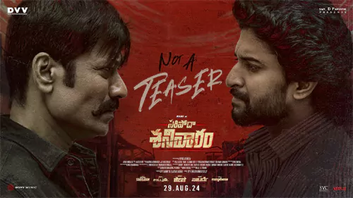‘పూర్వకాలంలో నరకాసురుడనే రాక్షసుండేవాడు. అతను ప్రజల్ని చాలా రకాలుగా హింసించేవాడు. అందుకే శ్రీకృష్ణుడు.. సత్యభామతో కలిసి.. అతన్ని..’ అంటూ నేచురల్ స్టార్ నాని వెరైటీగా హిందీలో చెప్పే డైలాగ్తో ఎంట్రీ ఇచ్చాడు. ‘సరిపోదా శనివారం’ సినిమాకి సంబంధించి ‘నాట్ ఎ టీజర్’ పేరుతో శనివారం విడుదల చేశారు. జూలై 20 నటుడు, దర్శకుడు ఎస్.జె.సూర్య పుట్టినరోజు కావడంతో ఈ గ్లింప్స్ను రిలీజ్ చేశారు మేకర్స్. నాని హీరోగా, ప్రియాంక మోహన్ హీరోయిన్గా నటించిన ఈ సినిమాకు వివేక్ ఆత్రేయ దర్శకుడు. గతంలో విడుదలైన ఈ సినిమా మొదటి గ్లింప్స్, సాంగ్స్కి సూపర్ రెస్పాన్స్ వచ్చింది.