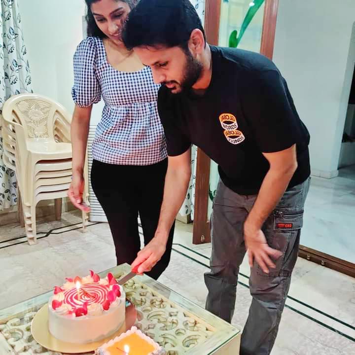 కాగా సోమవారం అర్ధరాత్రి తేదీ మారే సమయానికి నితిన్ భార్య షాలిని, కొంతమంది సన్నిహిత స్నేహితులు అతడిని సర్ప్రైజ్ చేశారు. "నితిన్" అని రాసున్న కేక్ను తీసుకొచ్చారు. షాలిని పక్కన నిల్చొని విషెస్ చెబుతుండగా ఆ కేక్ కట్ చేశాడు నితిన్. సింగర్ సునీత, రామ్ దంపతులు కూడా ఈ సెలబ్రేషన్స్లో పాల్గొన్నారు. పలు తెలుగు, తమిళ చిత్రాలకు కాస్ట్యూమ్ డిజైనర్గా పనిచేసిన, పలువురు సెలబ్రిటీలకు పర్సనల్ స్టైలిస్ట్ అయిన నీరజ కోన ఈ సెలబ్రేషన్స్కు సంబంధించిన కొన్ని ఫొటోలను తన ఇన్స్టా హ్యాండిల్ ద్వారా షేర్ చేశారు. వాటికి "Happy birthday heroooo..Wishing you years of love and happiness." అనే క్యాప్షన్ జోడించారు.