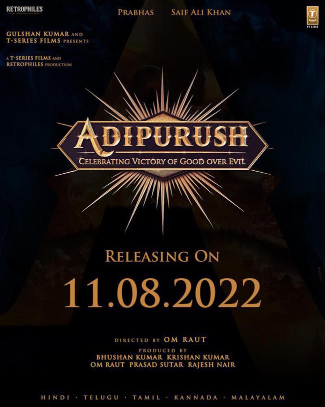 ప్రభాస్ కథానాయకుడిగా ఓం రౌత్ తెరకెక్కించనున్న సినిమా 'ఆదిపురుష్'. రామాయణం ఆధారంగా ఈ సినిమా రూపొందుతున్న సంగతి తెలిసిందే. దీనిని ప్రకటించిన దగ్గర నుండి ఏదో ఒక అప్డేట్ ఇస్తూనే ఉన్నారు. తాజాగా ఈ చిత్రాన్ని ఆగస్టు 11, 2022లో విడుదల చేయనున్నట్లు ప్రకటించారు. భారీ చిత్రాలకు అప్డేట్లు ఇచ్చేముందు సోషల్ మీడియాలో హడావిడి చేయడం సహజం. అటువంటిది ఏదీ లేకుండా సడన్ గా ఈరోజు ఉదయం రిలీజ్ డేట్ ప్రకటించడంతో ప్రభాస్ అభిమానులు సైతం సర్ ప్రైజ్ ఫీలయ్యారు.