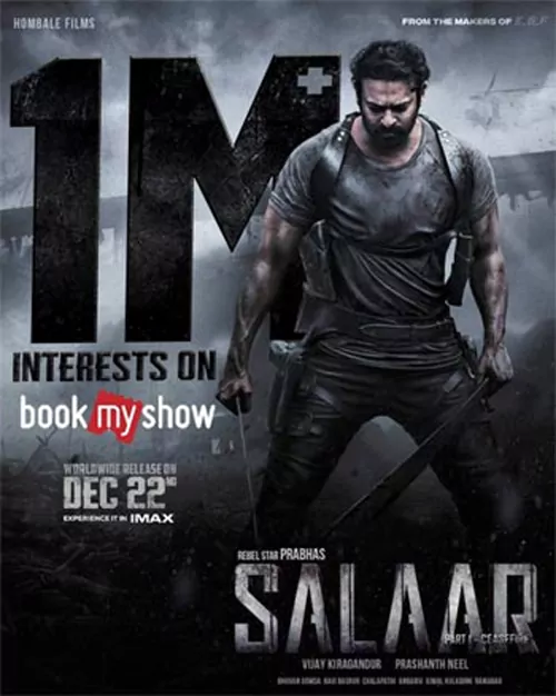 ప్రముఖ ఆన్ లైన్ టికెట్ బుకింగ్ సంస్థ అయినటువంటి బుక్ మై షో లో సలార్ 1మిలియన్ ఇంట్రెస్ట్ లను సొంతం చేసుకుంది. బుక్ మై షో యాజమాన్యం సలార్ మూవీ చూడాలని ఇంట్రెస్ట్ ఉందా అని తమ యాప్ లో ఉంచింది.దీంతో సలార్ టికెట్ కోసం ఆ యాప్ లోకి వెళ్లిన వాళ్లంతా మూవీ చూడాలని ఉందని చెప్పారు. ఇలా 1మిలియన్ మంది సినిమా చూడాలని చెప్పారు.ఇప్పుడు ఈ న్యూస్ ని సలార్ టీమ్ ఒక పోస్టర్ ద్వారా అనౌన్స్ చేసింది.దీంతో ప్రభాస్ ఫాన్స్ ఆనందానికి అవధులు లేవు. ఇటీవలే వచ్చిన ప్రభాస్ ఆదిపురుష్ కూడా బుక్ మై షోలో 1 మిలియన్ కి పైగా ఇంట్రెస్ట్ లను సొంతం చేసుకుంది.