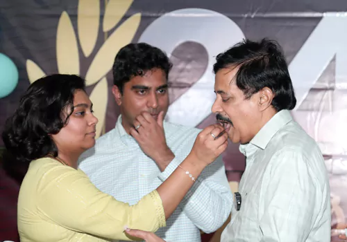 తెలుగువన్ చేసిన ఈ 24 సంవత్సరాల ప్రయాణంలో ఎన్నెన్నో విజయాలు, ఎన్నెన్నో ఎదురురాళ్ళు... విజయాలను ఆస్వాదిస్తూ, ఎదురురాళ్ళను అధిగమిస్తూ మరింత ఉజ్వల భవిష్యత్తువైపు ఆశావాదంతో దూసుకువెళ్తున్న తెలుగువన్ 24వ వార్షికోత్సవం గురువారం (09-05-2024) నాడు సంస్థ కార్యాలయంలో వైభవంగా జరిగింది. మూడు వందల మందికి పైగా సంస్థ ఉద్యోగులు ఆనందోత్సాహాలతో పాల్గొన్న ఈ వార్షికోత్సవంలో సంస్థ అధినేత కంఠంనేని రవిశంకర్, సంస్థ డైరెక్టర్ శ్రీమతి హిమబిందు కంఠంనేని, కంఠంనేని రవిశంకర్ దంపతుల కుమార్తె డాక్టర్ జితేష్ణ, అల్లుడు సాయిరామ్ పాల్గొన్నారు. ఉద్యోగుల కరతాళధ్వనుల మధ్య వీరు కేక్ కట్ చేసి, తమ ఆనందాన్ని అందరితో పంచుకున్నారు.