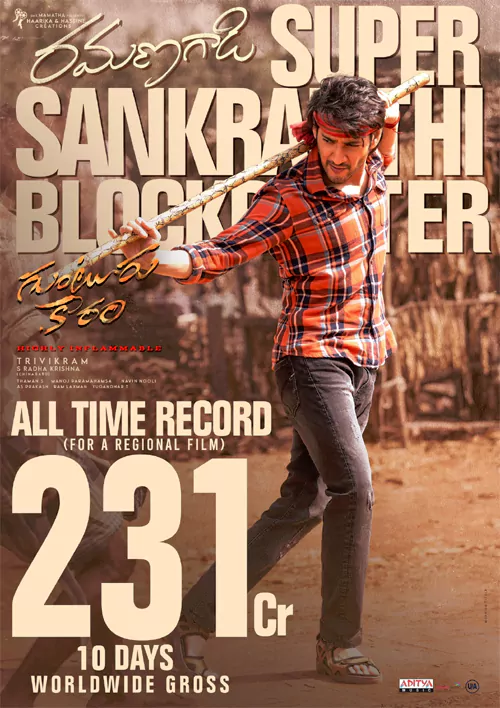 'గుంటూరు కారం' వసూళ్ల విషయంలో ట్రేడ్ వర్గాలు, మేకర్స్ చెబుతున్న లెక్కలకి చాలా తేడా ఉంది. ట్రేడ్ వర్గాల అంచనా ప్రకారం ఈ సినిమా పది రోజుల్లో సుమారుగా రూ.176 కోట్ల గ్రాస్ రాబట్టింది. అయితే మేకర్స్ మాత్రం ఈ సినిమా రూ.231 కోట్ల గ్రాస్ వసూలు చేసినట్లు అధికారికంగా పోస్టర్ రిలీజ్ చేశారు. ఈ రెండింటి మధ్య ఏకంగా రూ.55 కోట్ల వ్యత్యాసం ఉంది. దీంతో సోషల్ మీడియాలో ఈ కలెక్షన్ల గురించి పెద్ద చర్చే జరుగుతోంది.