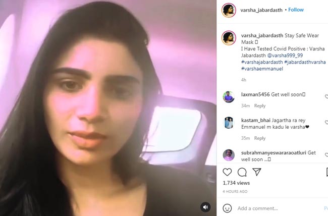 "రెండు రోజుల నుంచీ మరీ ఎక్కువగా కాకపోయినా లక్షణాలు కనిపిస్తున్నాయి. ఓకే ఓకే అనుకుంటూ వచ్చాను. బయట పరిస్థితులు ఏమాత్రం బాగా లేవు. అందుకే ఎందుకైనా మంచిదని టెస్ట్ చేయించుకుందామని వచ్చాను. టెస్టులో పాజిటివ్ వచ్చింది. ఇక్కడ పరిస్థితి చాలా ఘోరంగా ఉంది. ఇక్కడ జరుగుతోంది బయట ఎవరికీ తెలీడం లేదు. ఇక్కడ గనక చూస్తే ఎవరికైనా చాలా టెన్షన్ వస్తుంది. మొదట భయపడతారు. చనిపోయినవాళ్లను ప్యాక్చేసి అలా విసిరేస్తున్నారు. అది చూడగానే లైవ్కు వచ్చి చెప్పాలనుకున్నాను. ప్లీజ్ అందరూ చాలా జాగ్రత్తగా ఉండండి." అంటూ ఆ వీడియోలో చెప్పుకొచ్చింది వర్ష.