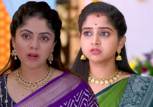 మరొకవైపు స్వరాజ్ చిటికె వేసి రుద్రాణిని పిలుస్తాడు. ఏంట్రా నువ్వు ఎప్పుడు పిలిస్తే అప్పుడు నేను రావాలా అని రుద్రాణి అనగానే నేను ఈ ఇంటికి వారసుడిని నేను చెప్పినట్టు వినాలని స్వరాజ్ అంటాడు. దొరికావురా అని రుద్రాణి ఇంట్లో అందరిని పిలుస్తుంది. ఈ బాబూ ఈ ఇంటికి వారసుడట.. నాకు ముందు నుండి ఈ బాబుపై డౌట్ ఉంది.. నాకు తెలిసి ఈ బాబు రేవతి కొడుకే అయి ఉంటాడని రుద్రాణి అంటుంది. నాకు ఇప్పుడు వాళ్ళ అమ్మ ముసుగు తీసి చూపించాలని రుద్రాణి తియ్యబోతుంటే.. వద్దని అపర్ణ ఆపుతుంది. వాళ్ళ ఆచారాన్ని ఎందుకు అలా చేస్తావని అంటుంది. స్వరాజ్ ఎందుకు అలా వారసుడివి అన్నావని అపర్ణ అడుగుతుంది. నువ్వే కదా మొన్న ఈ ఇల్లు నీదన్నావ్.. అందుకే అన్నానని స్వరాజ్ అంటాడు. దాంతో అందరు రిలాక్స్ అవుతారు.