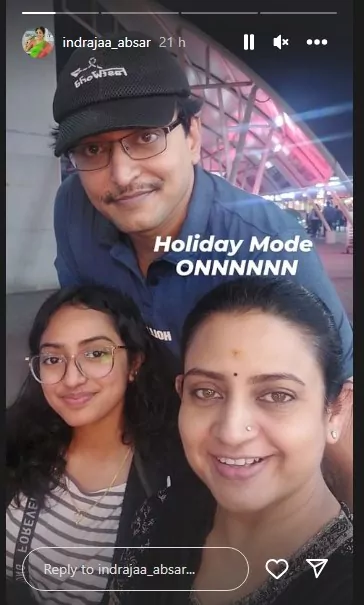 ఇక ఈమె రీసెంట్ గా తన ఇన్స్టాగ్రామ్ స్టేటస్ లో ఒక పోస్ట్ పెట్టింది. అందులో తన భర్త, తన కూతురు కూడా కనిపించారు. సంక్రాంతి సంబరాలు చేసుకున్నారు వీరు. హాలిడే మోడ్ ఆన్ అయ్యింది అంటూ తన వాయిస్ తో ఒక వీడియోని కూడా స్టేటస్ లో పోస్ట్ చేశారు. "అర్ధరాత్రి 12 గంటలు దాటేసింది. అసలు మా ఆయన ఇలా ఎప్పుడూ అలౌ చేయరు.. ఏమో మరి.. అలాంటి ఆయన ఈరోజు బయటకు తీసుకొచ్చారు. ఇంకా మేము బయటే ఉన్నాము. ఇక్కడ ఫుడ్ స్ట్రీట్ అని కొత్తగా స్టార్ట్ చేసారు. చెన్నైలోని కతిపర బ్రిడ్జి దగ్గర. సడెన్ సర్ప్రైజ్ గా మమ్మల్ని ఇక్కడికి తీసుకొచ్చారు. ఇక ఇక్కడ ఫుల్ ఫన్ అన్నమాట. మేం ముగ్గురం మంచి క్వాలిటీ టైంని ఎంజాయ్ చేసాం." అంటూ ఫుల్ జోష్ తో చెప్పారు ఇంద్రజ.