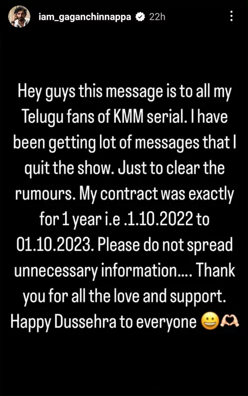 మురారి క్యారెక్టర్ ముగిసిందని ఈ సీరియల్ అభిమానులు ప్రోమోల కింద కామెంట్లలో అడుగుతున్నారు. దీంతో పాటుగా గగన్(మురారి) ని ఇన్ స్టాగ్రామ్ లో అభిమానులు ప్రశ్నల మీద ప్రశ్నలు అడుగుతున్నారంట. ఇక వాళ్ళ ప్రశ్నలన్నింటికి సమాధానమిచ్చాడు గగన్ అలియాస్ మురారి. " నాకు చాలా మెసెజ్ లు వస్తున్నాయి. నా కాంట్రాక్ట్ సరిగ్గా సంవత్సరం ఉంది. అది కూడా 1-10-222 నుండి 1-10-23 వరకని గగన్ అన్నాడు. దీని గురించి తప్పుడు ప్రచారం చేయకండి అని గగన్ అన్నాడు. నాకు ఈ సీరియల్ లో కాంట్రాక్ట్ ముగిసిందని రూమర్స్ స్ప్రెడ్ చేయకండని గగన్ అన్నాడు. దీంతో మురారి క్యారెక్టర్ ఈ కథలో ముగిసిందని స్పష్టంగా తెలిసింది. మరి మురారి స్థానంలో ఇంకెవరు వస్తారనే ఆసక్తి అందరిలో నెలకొంది.