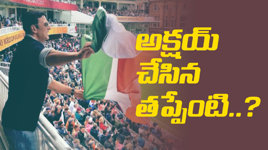 పొరపాట్లు మానవ సహజం. ఒక్కోసారి మంచివారు కూడా పొరపాట్లు చేస్తుంటారు. తెలీక జరిగిన పొరపాటుని బూతద్దంలో చూడ్డం పెద్ద తప్పు. ఈ విషయాన్ని కొందరు ఎప్పుడు గ్రహిస్తారో ఏమో... బాలీవుడ్ సూపర్ స్టార్ అక్షయకుమార్ విషయంలో సోషల్ మీడియాలో ఈ ఆదివారం వినిపించిన విమర్శలు నిజంగా ఖండించాల్సినవే. ఆదివారం ఇంగ్లాండ్, ఇండియా దేశాలకు జరిగిన మహిళల వరల్డ్ కప్ ఫైనల్ ని ప్రత్యక్షంగా వీక్షించారు అక్షయ్. మన క్రీడాకారులను ఉత్తేజపరుస్తూ... లార్డ్స్ గ్యాలరీలో హంగామా చేశారు. ఇందులో భాగంగా మన జాతీయ జెండా చేతబూని టీమ్ కి ఛీర్ చేస్తున్న ఫొటో ఒకటి ఫేస్ బుక్, ట్విట్టర్లలో పోస్ట్ చేశాడు అక్షయ్. అతను చేసిన పెద్ద పొరపాటు అదే. ఇంతకీ ఆ ఫోటో షేర్ చేస్తే తప్పేంటి? అనేగా మీ అనుమానం. పోస్ట్ చేసిన ఆ ఫొటోలో అక్షయ్ జాతీయ జెండాను తల్లక్రిందులుగా పట్టుకొని ఉన్నాడు. అయితే... ఇది కావాలని చేసింది కాదని అందరికీ తెలుసు.