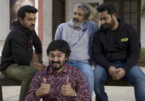 తారక్, చరణ్ ప్రధాన పాత్రధారులుగా రాజమౌళి దర్శకత్వంలో తెరకెక్కిన పాన్ ఇండియా మూవీ 'ఆర్ఆర్ఆర్'. మార్చి 25 న ఈ సినిమా ప్రేక్షకుల ముందు రానుంది. ఈ మూవీ ప్రమోషన్స్ లో భాగంగా తాజాగా ప్రముఖ హిందీ కమెడియన్ భువన్ బాయ్ ఆర్ఆర్ఆర్ టీమ్ తో ఇంటర్వ్యూ నిర్వహించాడు. ఈ సందర్భంగా అతను శక్తి, జంజీర్ సినిమాల ప్రస్తావన తీసుకొచ్చి నవ్వించాడు.