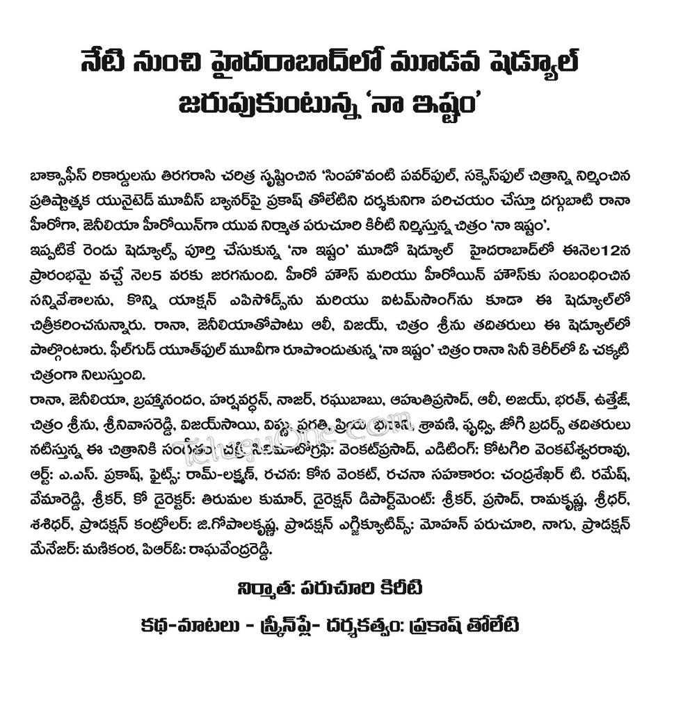 Daggubati Rana Naa Ishtam Movie Updates