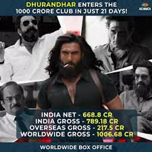 ఇక సిల్వర్ స్క్రీన్ పై ధురంధర్ తన ప్రభావాన్ని యధావిధిగా కొనసాగిస్తు రీసెంట్ గా వెయ్యి కోట్ల క్లబ్ లోకి ప్రవేశించింది. మేకర్స్ ఈ మేరకు అధికారకంగా ప్రకటిస్తు ఒక పోస్టర్ రిలీజ్ చేసారు. సదరు పోస్టర్ లో 1006 .7 కోట్ల గ్రాస్ ని రాబట్టిందని, ఇండియాలో 789 .18 కోట్లు, ఓవర్ సీస్ లో 217 .50 కోట్లు వసూలు చేసినట్టుగా కూడా చెప్పారు. డిసెంబర్ 5 న రిలీజైన ధురంధర్ రిలీజైన ఇరవై రెండు రోజులకే వెయ్యి కోట్ల క్లబ్ లో చేరిందంటే పూర్తి రన్నింగ్ లో ఎన్ని కలెక్షన్స్ వసూలు చేస్తుందనే ఆసక్తి అందరిలో ఏర్పడింది. బాలీవుడ్ లో ఈ సంవత్సరం అత్యధిక కలెక్షన్స్ సాధించిన చిత్రం కూడా ధురంధర్ నే.