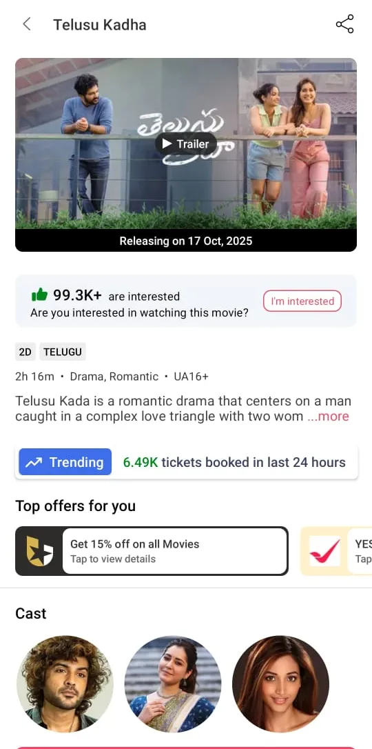 Currently, the movie is trending on BMS with 6.4k tickets in 24 hours while Dude is trending at 4.32k tickets per hour. The stark difference in booking status and speed on the most popular ticket app is a worrying trend for the actor. He did appear to have cracked the code of success with DJ Tillu and Tillu Square but he needs Telusu Kada to be a big success.