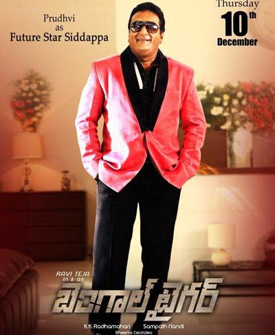 Last Friday, Prithvi entertained with Shankarabaranam's Precentage Paramesh role, where he excelled with timed comedy and different way of delivering punches. On coming Thursday, Bengal Tiger is arriving to theatres (December 10th) and Prithvi plays a crucial role in this film too. He will be seen as "Future Star Siddappa" in the movie.