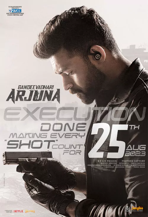 'గాంఢీవధారి అర్జున' షూటింగ్ పూర్తయిన విషయాన్ని తెలియజేస్తూ మేకర్స్ ఓ పోస్టర్ను విడుదల చేశారు. ఇందులో వరుణ్ తేజ్ చేతిలో గన్ పట్టుకుని చాలా స్టైలిష్గా కనిపిస్తున్నాడు. వరుణ్తేజ్ ఈ చిత్రంలో సెక్యూరిటీ ఆఫీసర్గా కనిపిస్తాడు. అత్యంత ప్రమాదకరమైన పరిస్థితుల నుంచి ప్రజలను అతను ఎలా కాపాడాడు, అతని స్ట్రాటజీస్ ఏంటి? అనేది తెలుసుకోవాలంటే ఆగస్ట్ 25 వరకు ఆగాల్సిందేనంటున్నారు మేకర్స్. మిక్కీ జె.మేయర్ సంగీతాన్ని అందిస్తున్న ఈ చిత్రానికి సినిమాటోగ్రాఫర్ గా ముఖేష్, ఆర్ట్ డైరెక్టర్ గా అవినాష్ కొల్ల వ్యవహరిస్తున్నారు.