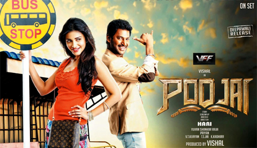 విశాల్, శృతిహాసన్ జంటగా నటిస్తున్న తమిళ చిత్రం "పూజై". హరి దర్శకత్వంలో తెరకెక్కుతున్న ఈ చిత్ర షూటింగ్ లో హీరో విశాల్ కు ఇటీవలే తీవ్ర గాయాలయ్యాయి. ఈ చిత్రానికి సంబంధించిన కొన్ని యాక్షన్ సన్నివేశాలను చిత్రీకరిస్తున్నారు. బ్రిడ్జ్ పై నుంచి కారుతో జంప్ చేసే సన్నివేశాలను తెరకెక్కించే సమయంలో విశాల్ తీవ్రంగా గాయపడ్డాడు. వెంటనే యూనిట్ సభ్యులు విశాల్ ను హాస్పిటల్ కి తరలించారు. ఆయన ఎడమ చేతికి దాదాపు 20కుట్లు పడినట్లు తెలిసింది. దాంతో రెండు వారాలపాటు షూటింగ్ ఆపేసారు. అసలే మాస్, యాక్షన్ డైరెక్టర్ గా పేరు తెచ్చుకున్న హరి ఈ సినిమాను ఎలాగైనా ఓ బ్లాక్ బస్టర్ గా తెరకెక్కించాలని ప్రయత్నిస్తున్నాడు. యువన్ శంకర్ రాజా సంగీతం అందిస్తున్నాడు. విశాల్ స్వయంగా తన స్వంత బ్యానర్లో నిర్మిస్తున్నాడు.