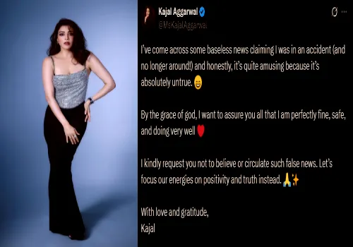 Kajal Aggarwal clarifying the rumors tweeted, "I’ve come across some baseless news claiming I was in an accident (and no longer around!) and honestly, it’s quite amusing because it’s absolutely untrue. By the grace of god, I want to assure you all that I am perfectly fine, safe, and doing very well. I kindly request you not to believe or circulate such false news. Let’s focus our energies on positivity and truth instead."