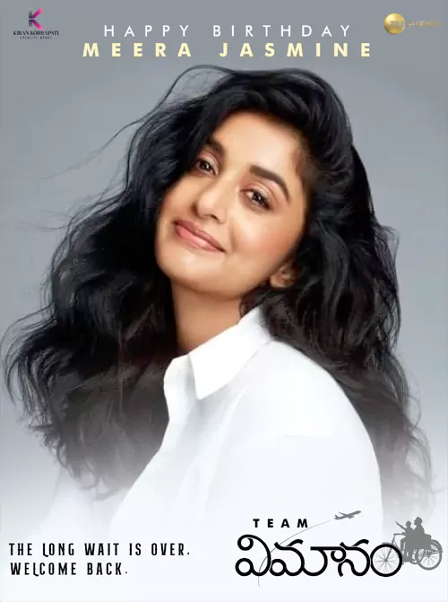జీ స్టూడియోస్, కేకే క్రియేటివ్ వర్క్స్ సంయుక్తంగా నిర్మిస్తున్న ద్విభాషా చిత్రం 'విమానం'. ఈ చిత్రం తెలుగు, తమిళ భాషల్లో రూపొందుతోంది. ఈరోజు మీరా జాస్మిన్ పుట్టినరోజు సందర్భంగా ఆమెకు శుభాకాంక్షలు తెలుపుతూ మూవీ టీమ్ స్పెషల్ పోస్టర్ ను విడుదల చేసింది. అందులో మీరా జాస్మిన్ లుక్ ఆకట్టుకుంటోంది. మరి ఈఎంట్రీ ఆమెకు ఎలా కలిసొస్తుందో చూడాలి.
