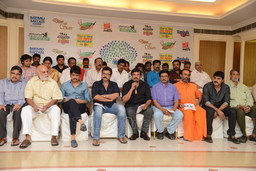 ఎమ్మెల్యేగా తన నియోజకవర్గంలో పర్యటిస్తోన్న కారణంగా బాలకృష్ణ హాజరు కాలేకపోయారుగానీ, ‘మేముసైతం’ ప్రోగ్రామ్ షెడ్యూల్ని విడుదల చేయడానికి చిరంజీవి, నాగార్జున, వెంకటేష్ మీడియా ముందుకొచ్చి మాట్లాడిన తీరు అందర్నీ ఆశ్చర్యపరిచింది. ‘మేం సహాయం చేస్తున్నాం.. ఆ సహాయంలో మీరూ భాగమవ్వండి..’ అని చిరంజీవి, నాగార్జున, వెంకటేష్ చెప్పడం గొప్ప విషయమే.