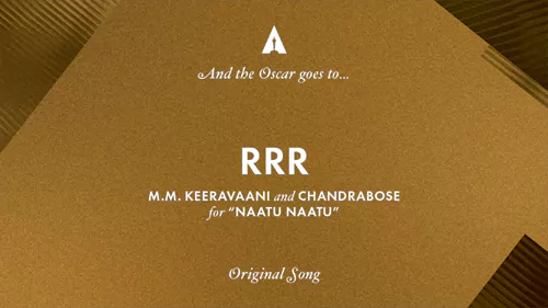 జూనియర్ ఎన్టీఆర్, రామ్ చరణ్ ప్రధానపాత్రధారులుగా ఎస్.ఎస్.రాజమౌళి దర్శకత్వంలో తెరకెక్కిన సినిమా 'ఆర్ఆర్ఆర్'. డీవీవీ ఎంటర్టైన్మెంట్ బ్యానర్ లో రూపొందిన ఈ చిత్రానికి ఎం.ఎం. కీరవాణి సంగీతం అందించారు. ప్రపంచవ్యాప్తంగా 'ఆర్ఆర్ఆర్' సినిమాకి ఎంతటి ఆదరణ లభించిందో.. ఇందులోని 'నాటు నాటు' పాటకు అంతకుమించిన ఆదరణ లభించింది. భాష, ప్రాంతంతో సంబంధం లేకుండా ప్రపంచ నలుమూలల్లో 'నాటు నాటు' పాట మారుమోగిపోయింది. ఈ సాంగ్ ఆస్కార్ గెలుస్తుందని హాలీవుడ్ ప్రముఖులు సైతం భావించారు. అందరూ ఊహించినట్లుగానే ఈ సాంగ్ ఆస్కార్ గెలిచి సంచలనం సృష్టించింది. కీరవాణి స్వరపరిచిన ఈ పాటకు చంద్రబోస్ సాహిత్యం అందించగా.. కాలభైరవ, రాహుల్ సిప్లిగంజ్ ఆలపించారు.