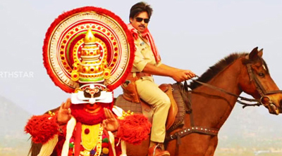 Teaser opens with Pawan Kalyan revealing only his eyes and rest of his face covered with a red towel. And then Pawan showcases his avatar in various postures, in the same Khaki dress. As he enjoys his time riding horse, driving a bike and then playing with his constables, no doubt, this new "Sardaar" is riding high on 'masala' and 'craze'.