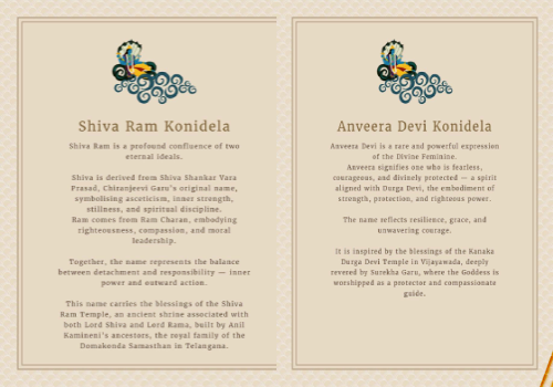 For their daughter, Anveera Devi, the couple chose a name that signifies a fearless and courageous spirit, embodying the power of Durga Devi. This name is a special nod to the devotion of Surekha Garu to the Kanaka Durga Devi Temple in Vijayawada.