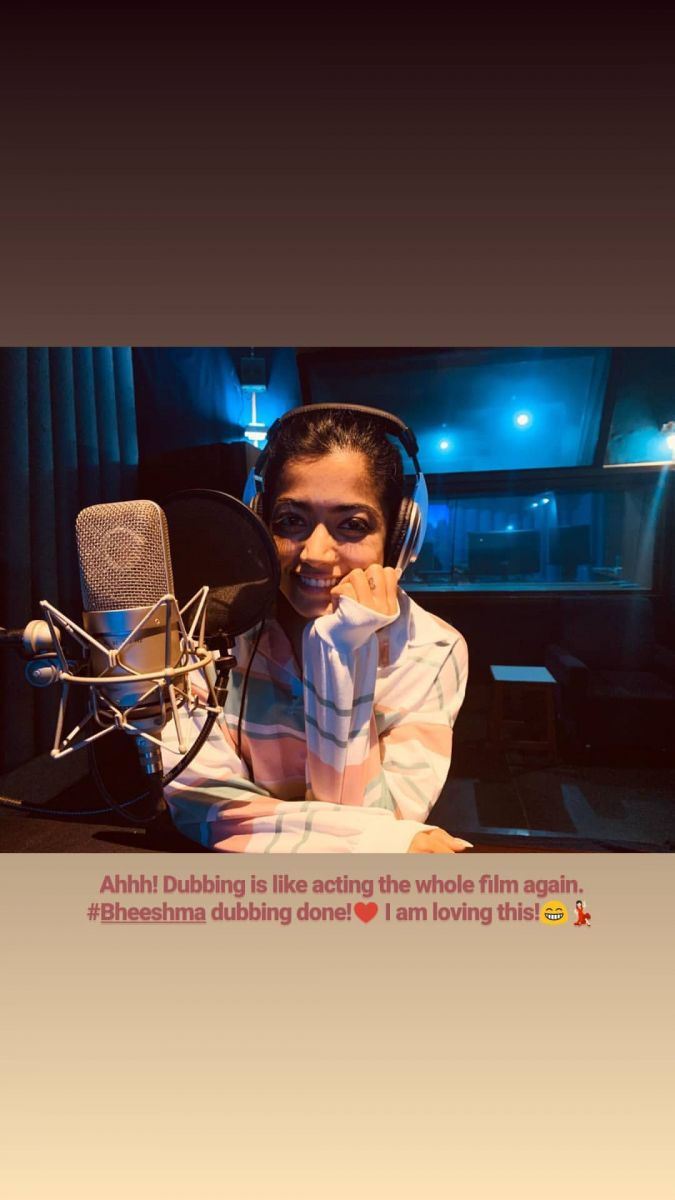 'డబ్బింగ్ చెప్పడం అంటే మళ్లీ సినిమా మొత్తం నటించడమే! ఇంకోసారి సినిమాలో యాక్ట్ చేసినట్టే' అంటోంది రష్మిక మందన్న. 'సరిలేరు నీకెవ్వరు' సక్సెస్ తర్వాత మరోసారి ప్రేక్షకులను పలకరించడానికి ఈ కన్నడ కుట్టి రెడీ అవుతోంది. నితిన్ సరసన రష్మిక మందన్న కథానాయికగా నటించిన సినిమా 'భీష్మ'. కొన్ని రోజుల క్రితం షూటింగ్ పూర్తయింది. సోమవారం తన పాత్రకు డబ్బింగ్ చెప్పడం పూర్తి చేసింది రష్మిక. ఈ సందర్భంగా డబ్బింగ్ స్టూడియోలో దిగిన ఫోటోను సోషల్ మీడియాలో పోస్ట్ చేసింది. 'ఆహ్!!! డబ్బింగ్ చెప్పడం అంటే మళ్ళీ మొత్తం సినిమా నటించినట్టే! 'భీష్మ' డబ్బింగ్ పూర్తి చేశా. ఐ యాం లవింగ్ థిస్. నాకు ఇష్టమే" అని రష్మిక పేర్కొన్నారు.