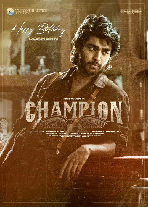 వైజయంతి మూవీస్ సమర్పణలో స్వప్న సినిమా బ్యానర్ లో ప్రముఖ నిర్మాత అశ్వనీదత్ నిర్మిస్తున్న 'ఛాంపియన్' సినిమాలో రోషన్ హీరోగా నటిస్తున్నాడు. ఈ చిత్రానికి ప్రవీణ్ అద్వైతం దర్శకత్వం వహిస్తున్నాడు. మిక్కీ జె.మేయర్ సంగీతం అందిస్తున్నాడు. రోషన్ పుట్టినరోజు సందర్భంగా ఈరోజు చిత్రం నుంచి ఫస్ట్ లుక్ పోస్టర్ ను విడుదల చేశారు. పొడవాటి జుట్టు, గడ్డంతో రోషన్ లుక్ ఆకట్టుకుంటోంది. పోస్టర్ బ్యాక్ గ్రౌండ్ లో ఇండియా మ్యాప్, రోషన్ కాస్ట్యూమ్స్ చూస్తుంటే ఇది పీరియాడిక్ ఫిల్మ్ అనిపిస్తోంది. వరుస విజయాలతో దూసుకుపోతున్న స్వప్న సినిమా బ్యానర్ లో రూపొందుతోన్న ఈ చిత్రంతో రోషన్ సాలిడ్ హిట్ అందుకుంటాడేమో చూడాలి.