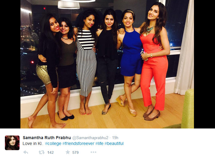 Some times you need a break to make your stress free , Samantha who is one of the busiest actress down south , she is work on shedules one after the others , right now this south siren is busy with Vikram project and Suriya 24 . Recently 24 movie first shedule got completed and in mean while she took few days break from shooting to make herself stress free, This beauty flew away to Malasia for a holiday and yesterday she posed up with her best friends over there and posted it on her official twitter handle ,