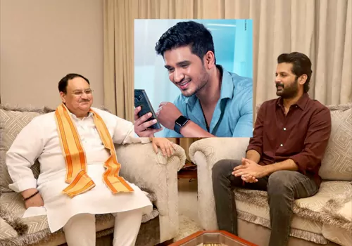 ఇటీవల బీజేపీ జాతీయ నాయకులు తెలుగు హీరోలను కలుస్తున్నారు. 'ఆర్ఆర్ఆర్'లో జూనియర్ ఎన్టీఆర్ నటనకు ముగ్దుడైన కేంద్ర హోమ్ మంత్రి అమిత్ షా మునుగోడు పర్యటన సమయంలో హైదరాబాద్ లో తారక్ ని కలిసి ప్రశంసించారు. ఇక రీసెంట్ గా బీజేపీ నేషనల్ ప్రెసిడెంట్ జేపీ నడ్డా యంగ్ హీరో నితిన్ ని కలిశారు. అయితే నితిన్ ఇంతవరకు పాన్ ఇండియా ఫిల్మ్ చేయలేదు. నార్త్ ఆడియన్స్ ని మెప్పించే సినిమా సంగతి అటుంచితే, ఇటీవల ఆయన చేసిన 'మాచర్ల నియోజకవర్గం' చిత్రం తెలుగు ప్రేక్షకులను సైతం మెప్పించలేకపోయింది. దీంతో అసలు నితిన్ ని నడ్డా ఎందుకు కలిశారన్నది ఆసక్తికరంగా మారింది. అయితే నిజానికి నడ్డా కలవాలనుకున్నది నితిన్ ని కాదట. ఆయన నిఖిల్ ని కలవాలనుకుంటే తెలంగాణ బీజేపీ నాయకులు నితిన్ ని తీసుకొచ్చి ఆయన ముందు కూర్చోబెట్టారని ప్రచారం జరుగుతోంది.